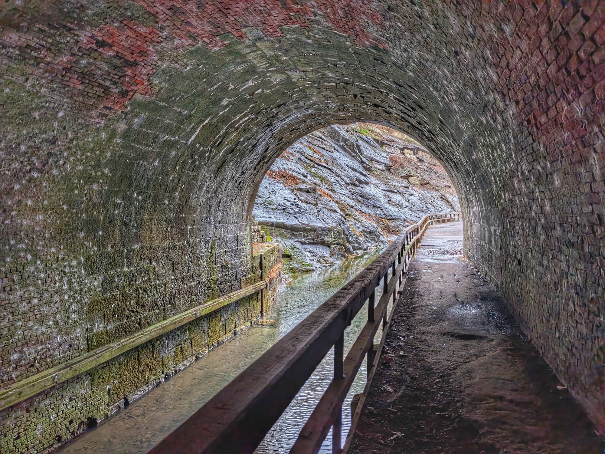The Paw Paw Tunnel — a 3,118-foot canal tunnel built in the 1850s — was passable and became the highlight of Bernie's week. He walked through it without a headlamp, using the brick-lined wall as a guide. For hikers who'd prefer to see where they're stepping, bring a light — there are puddles inside.