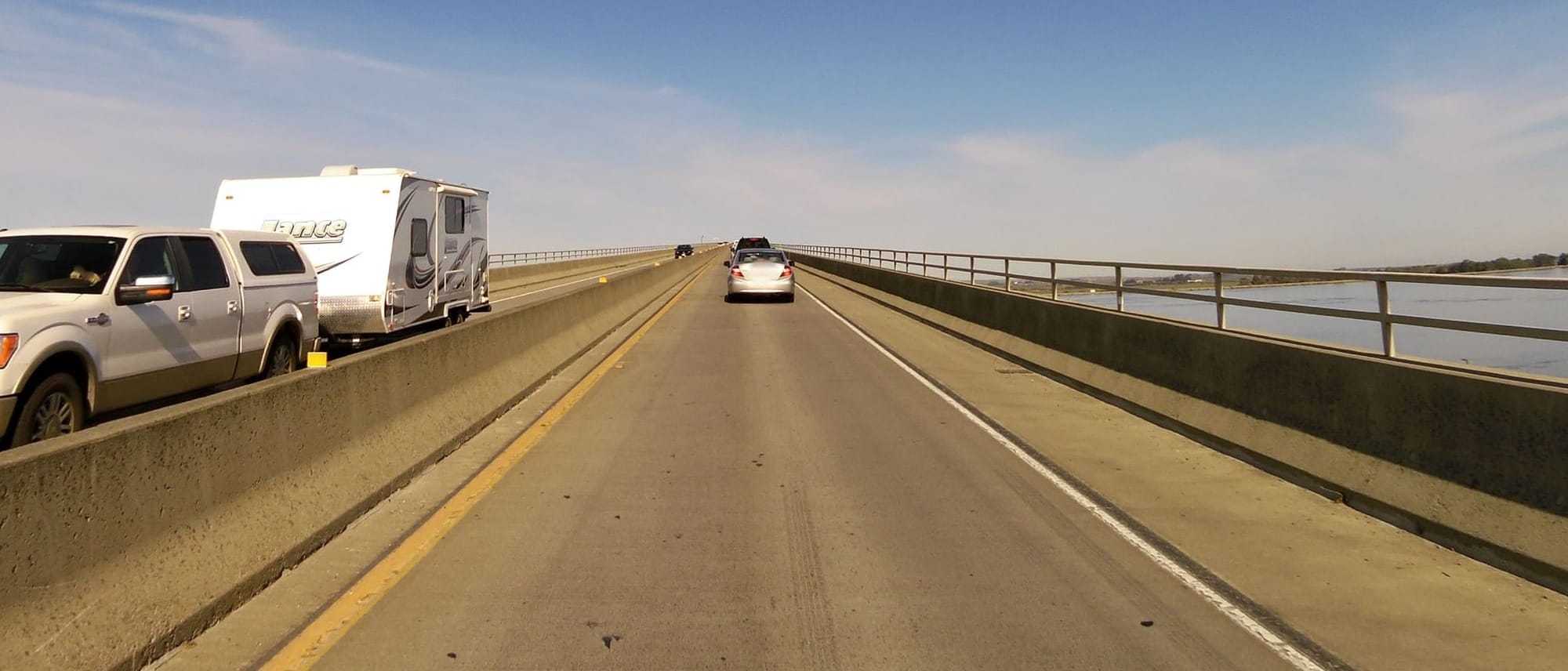 At 13 stories high, stretching 1.8 miles across the shimmering waters of the San Joaquin River, this bridge is a towering challenge for thru-hikers and cyclists alike. With a narrow 4-foot shoulder and vehicles and trucks zooming by at 55 mph or more, it’s not exactly a walk in the park.