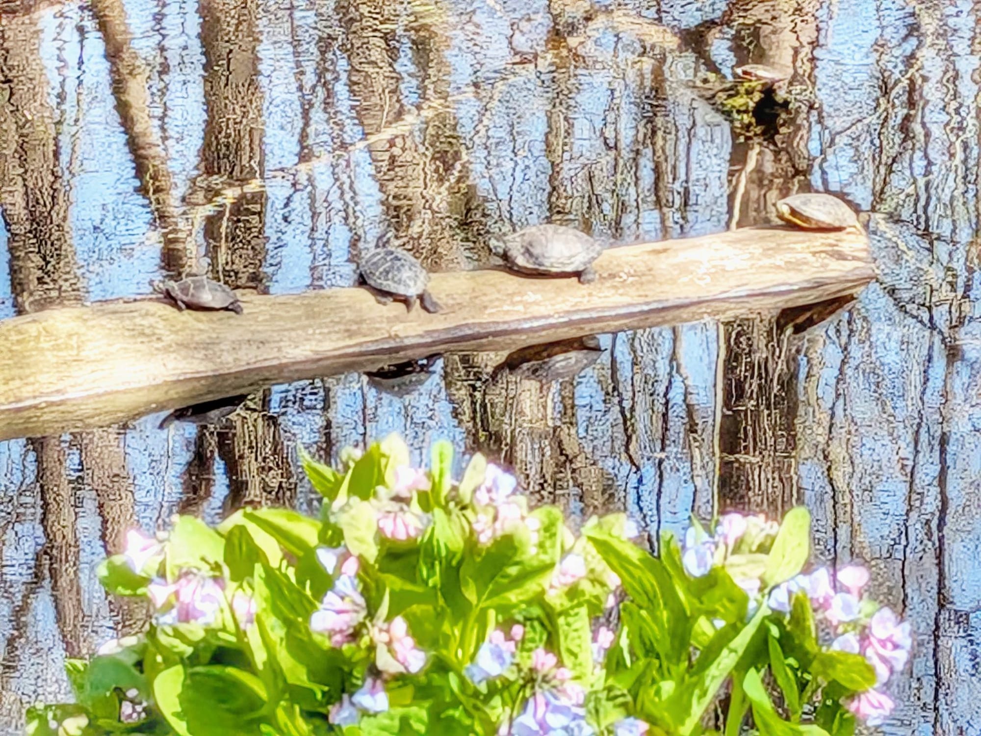 Bernie's dispatches painted a vivid picture of the canal ecosystem coming alive in early spring: bald eagles, great blue herons, ospreys, kingfishers, hooded mergansers, and pileated woodpeckers. Pond turtles — hundreds of them — sunbathed along the canal or dove in as he approached. Eastern ratsnakes, snapping turtles, newts, and even a baby snake no bigger than a large inchworm made appearances.
