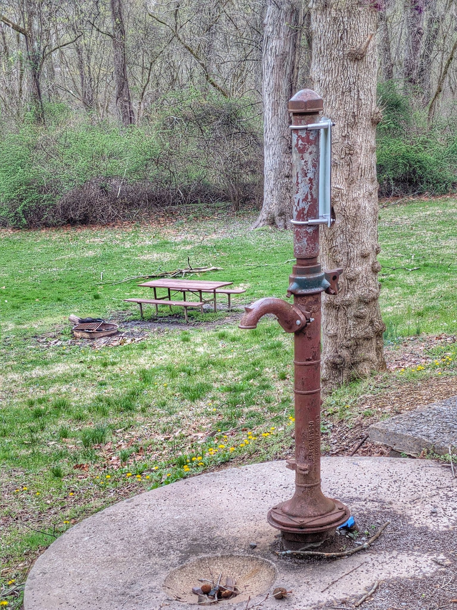 Bernie filtered water from creeks feeding into the Potomac (NOTE: NOT from the Potomac) and topped off at the few open businesses along the way. We're documenting exactly which sources were available at this time of year and updating our waypoint data accordingly. This is the kind of real-time intelligence that makes field verification so valuable — a static guidebook might still list those fountains as available.
