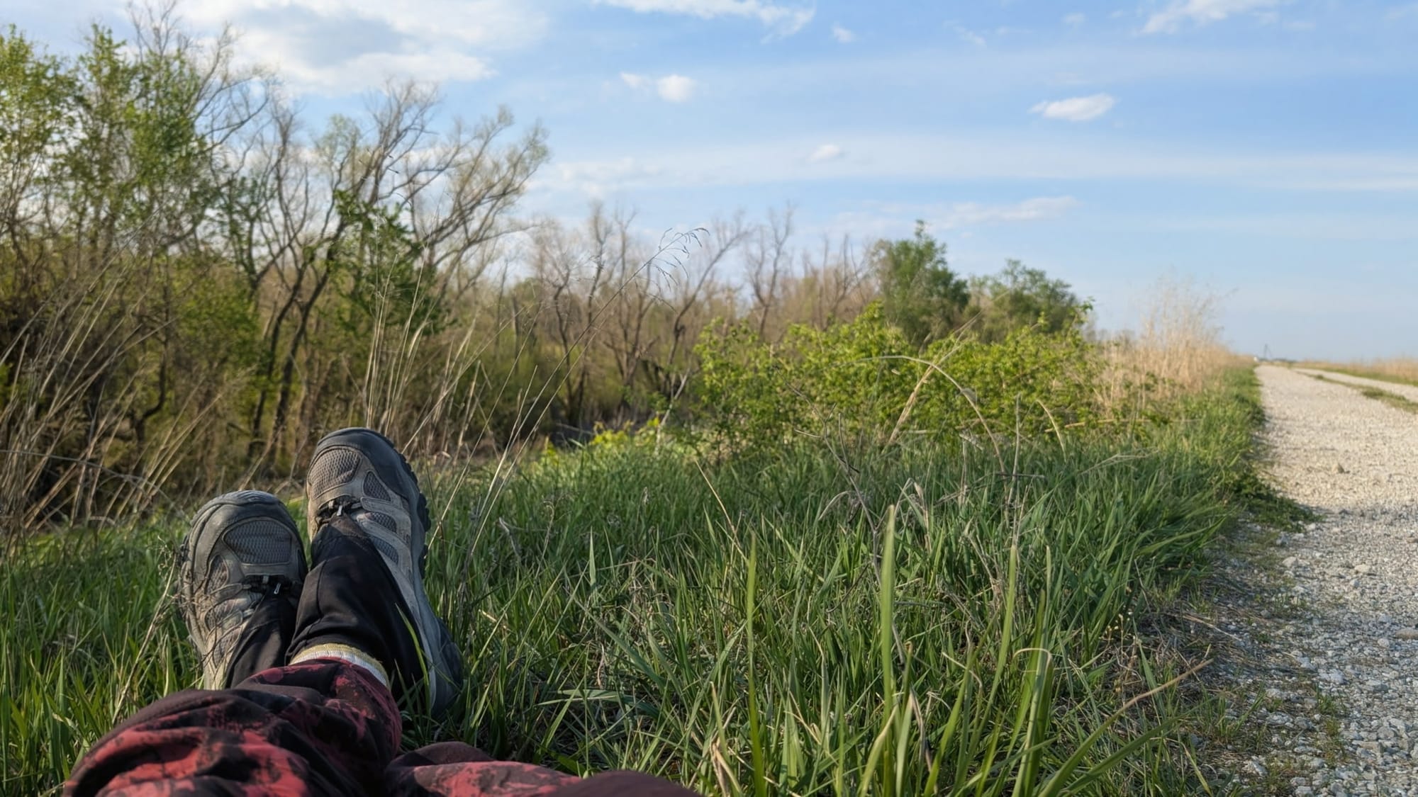Before they left Illinois, they also shared notes on a multi-generational trail angel family near the levee who offered beer, water, homemade sausage, and permission to camp — and tips on the most efficient way to use the elevators that get you up to the pedestrian bridge into St. Louis. Small things on paper, big things on a long day with a heavy pack.