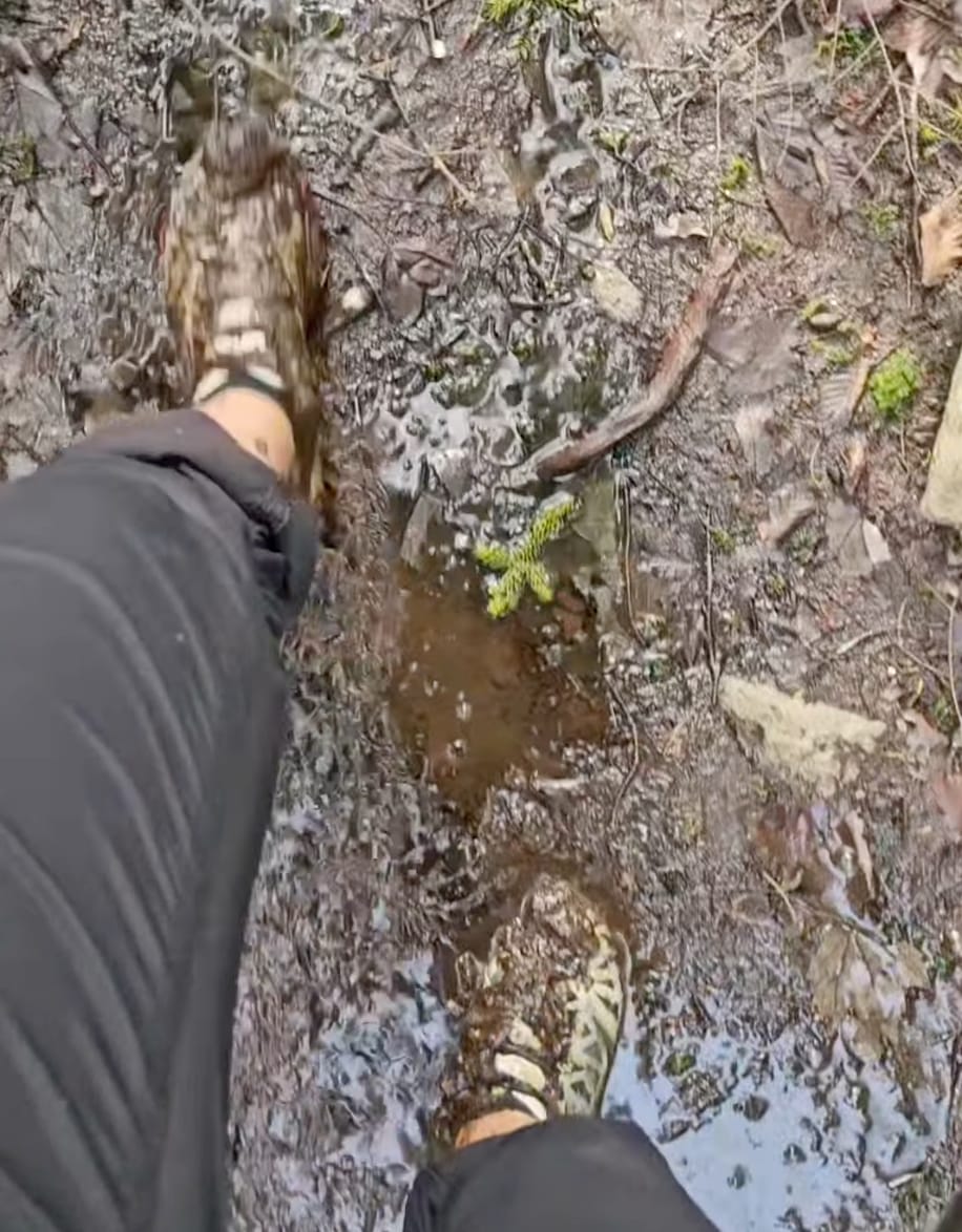 On the Buckeye Trail, she flagged a creek ford where the surrounding land is deep, soft mud — she got stuck for about fifteen minutes working through it. We've marked the area in both Gaia GPS and the turn-by-turn guides so hikers behind her know what they're walking into.