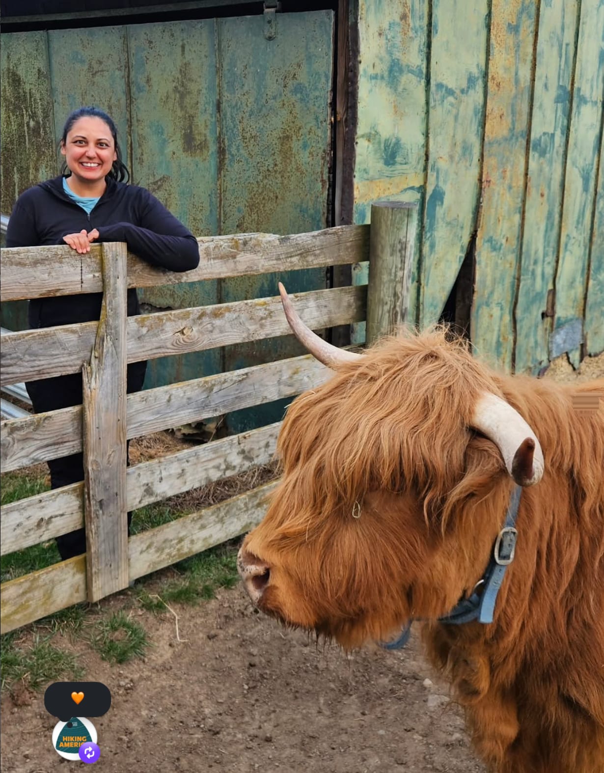She also made a new friend along the way — a Scottish Highland cow named Lou. (above) Sometimes the trail delivers exactly the kind of moment you didn't know you needed.