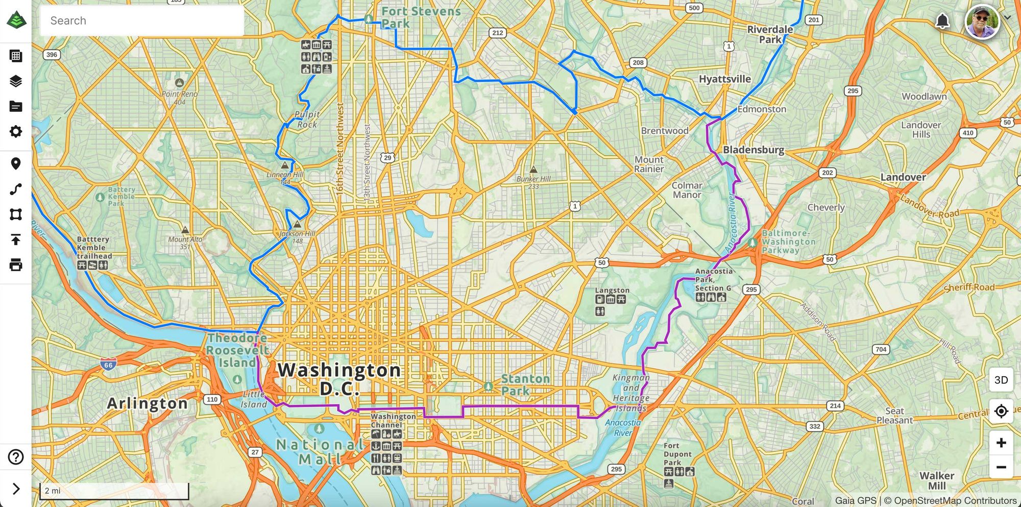 From the southern end of the C&O Canal, mirroring the HikANation route, Maryland Segment 4-D.C. travels directly through the National Mall, from the Lincoln Memorial to Capitol Hill, and then northward along the banks of the Anacostia River, rejoining the American Discovery Trail in Hyattsville.